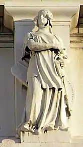 - Феррара. Лира в руке этой фигуры, атрибут Аполлона, символизирует просвещенный двор герцогов Эсте, давший пристанище Торквато Тассо и Лудовико Ариосто.