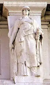 - Лукания, ныне называется Базиликата. Фигура в тоге, с мечтом и посохом, символизирующая древнюю культуру этой земли, сильный и закаленный характер луканцев. Скульптор — Луиджи Казадио.