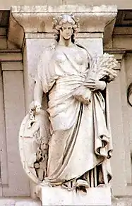 - Сицилия. Фигура с хлебным снопом и со щитом, на котором изображен древний символ острова — Тринакрия. Скульптор — Микеле Трипишано.