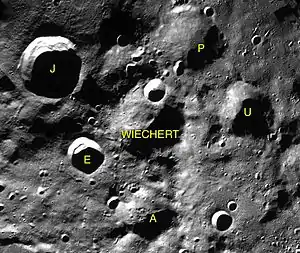 - Образование сателлитного кратера Вихерт J относится к эратосфенскому периоду[1].