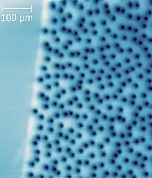 Вообще говоря, вихри движутся в сверхпроводящем материале, когда через него течёт ток[2]. Однако вихри могут самопроизвольно закрепляться на наноразмерных неоднородностях в материале. Этот процесс называется пиннингом (англ. pinning — закрепление, зацепление, пришпиливание), а эти неоднородности — центрами пиннинга[3]. Пиннинг вихрей нарушает порядок в решётке вихрей[4] и способствует сохранению сверхпроводящей фазы даже при протекании очень больших токов[5][2].