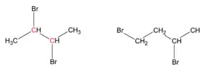 Точно так же, в понятии гем-дибромид морфема гем- (сокр. от геминальный) показывает, что оба атома брома прикреплены к одному и тому же атому (то есть состоят в 1,1-связи). Например, 1,1-дибромбутан — геминальный.[1]