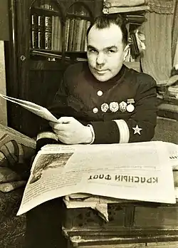 ![]() Бригадный комиссар В. В. Вишневский. Фото С. Струнникова, 1942 | |