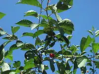 Плод — кисло-сладкая, шарообразная костянка, до 1 см в диаметре.