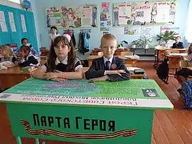 - В 2018 году в школе где он учился была установлена «Парта Героя», посвященная жизни и подвигу знаменитого земляка, почётного права сидеть за партой Героя будут удостаиваться лучшие ученики школы[2].