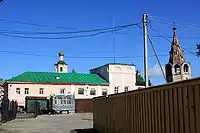 Отдельно стоящая шатровая колокольня тёплой Владимирской церкви построена одновременно с ней по образцу колокольни Софийского собора.