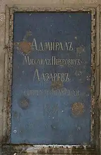 Михаил Петрович Лазарев (3 [14] ноября 1788 год, Владимир — 11 [23] апреля 1851 год, Вена, похоронен в Севастополе) — русский флотоводец и мореплаватель, адмирал (1843), кавалер орденов Святого апостола Андрея Первозванного (1850) и Святого Георгия IV класса за выслугу лет (1817), командующий Черноморским флотом и один из первооткрывателей Антарктиды. Один из основателей Новороссийска (1838).