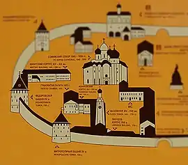 Эта небольшая, естественно защищённая территория, должна была соответствовать требованиям укреплённого Владычного двора. От городского населения кроме водных преград его отгораживали крепостные стены. Их конструкции были обнаружены с севера от Никитского корпуса.