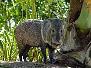 Фауна влажных лесов Тапажоса-Шингу: 1 — ошейниковый пекари, 2 — ягуар, 3 — красноспинный саки, 4 — красный ара, 5 — крокодиловый кайман | ||||||||||