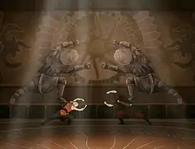 ![]() Аанг и Зуко повторяют движения статуй | |||||
