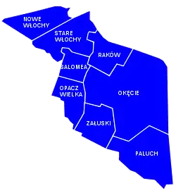 Согласно Городской системе информации (Miejski System Informacji), Влохи делятся на районы: