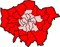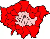| Внешний Лондон — по Закону об управлении Лондоном от 1963 года. |