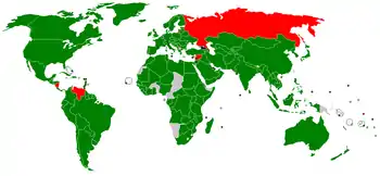 Отношения с Россией напряжены из-за проблемы Абхазии и Южной Осетии. В 2008 году, вскоре после пятидневной войны, Москва признала независимость Абхазии и Южной Осетии. В ответ Грузия разорвала дипломатические отношения с Россией и вышла из СНГ[6]. Во внешнеэкономическом плане Россия первые годы независимости Грузии занимала ведущую позицию в грузинской внешней торговле, являясь крупным покупателем, в частности грузинских вин и минеральной воды. Однако в 2006 году Роспотребнадзор запретил ввоз в РФ вина и виноматериалов из Грузии. Также под запрет попали поставки минеральной воды «Боржоми» и «Набеглави» как не отвечающей российским требованиям по качеству. В ответ делегация Грузии заблокировала продолжение переговоров по вступлению России в ВТО. Также грузинские спецслужбы задержали нескольких российских военнослужащих, проходивших службу в Группе российских войск в Закавказье, по подозрению в шпионской деятельности (вскоре они были отпущены). Также постепенно снизилась зависимость Грузии от поставок российских энергоносителей. До 2006 года Россия была единственным поставщиком природного газа в Грузию, но ввод в эксплуатацию газопровода Баку-Тбилиси-Эрзерум изменил эту ситуацию. В 2006 году в связи с завершением ремонтных работ и реконструкции на Ингурской ГЭС стало возможным прекратить импорт электроэнергии из России в летнее время. Ослаблению двустороннего сотрудничества способствовал вывод из Батуми и Ахалкалаки российских военных баз. С 2010 года грузинско-российские отношения стали улучшаться. 11 октября 2010 года президент Грузии Михаил Саакашвили подписал указ по которому при пересечении границы гражданами России, которые прописаны в Чечне, Ингушетии, Северной Осетии, Дагестане, Кабардино-Балкарии, Карачаево-Черкесии и Адыгее, будет задействован 90-дневный безвизовый режим[7]. МИД России решение грузинских властей объявить в одностороннем порядке о введении безвизового режима для проживающих на Северном Кавказе граждан РФ расценил как провокацию[8]. В 2014 году отношения вновь ухудшились, так как Грузия присоединилась к антироссийским санкциям.
