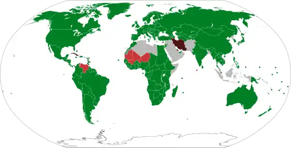 По состоянию на сентябрь 2020 года Израиль поддерживает дипломатические отношения со 160 странами и имеет 107 дипломатических миссий[1].