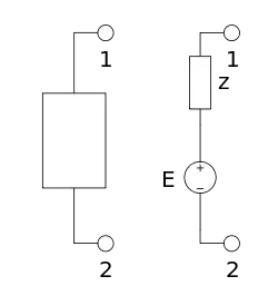 Представление двухполюсника как совокупность генератора напряжения и внутреннего сопротивления является наиболее простой и часто используемой эквивалентной схемой двухполюсника.