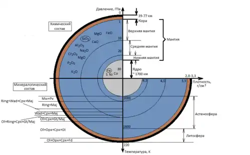 - 5-15 % по объёму в приповерхностном слое глубиной 80-150 км и до 20 % в более глубоком — 100—200 км
