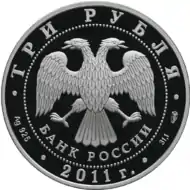 Серебряная памятная монета достоинством 3 рубля, посвящённая 200-летию Внутренних войск МВД России | ||