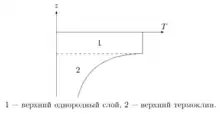 Разницу плотностей слоев считаем малой (). Будем также считать, что высота поверхностных волн пренебрежимо мала по сравнению с общей глубиной (). В таком случае, можно приближенно считать давление на поверхность дна постоянной.