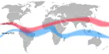 Сезонные смещения внутритропической зоны конвергенции наименее заметны над Атлантическим и Тихим океанами, над Африкой и Южной Америкой она смещается несколько больше. В бассейне Индийского океана изменения наиболее велики, здесь пассатная циркуляция атмосферы на основных пространствах заменена муссонной. Перемещения могут быть заметны и от одного дня к другому[2].
