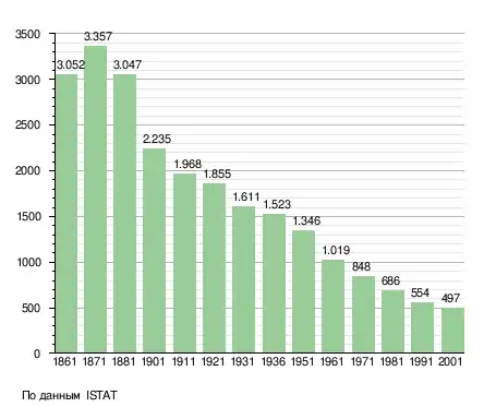 Население составляет 474 человека (2008 г.), плотность населения составляет 14 чел./км². Занимает площадь 33 км². Почтовый индекс — 16010. Телефонный код — 010.
