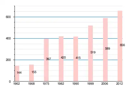 | 1962 | 1968 | 1975 | 1982 | 1990 | 1999 | 2006 | 2008 | 2011 | 2012 |