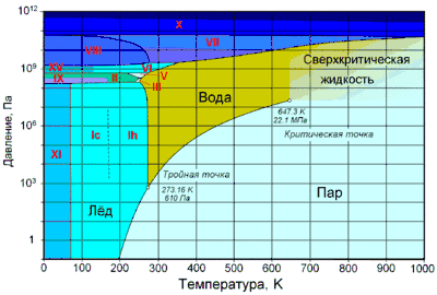 | Тройная точка | 273,2 K (0,01 ° C), 611,72 Па | ||