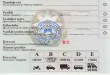 В Азербайджанской Республике водительские удостоверения различаются в зависимости от типа механических транспортных средств: