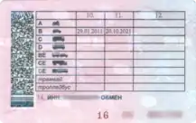| 14. | Общие ограничения в действии удостоверения, а также дополнительная информация о владельце | Год наиболее ранней даты получения права на управление ТС, серия и номер предыдущего ВУ, ИНН владельца и др. |