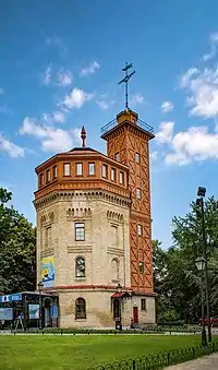 Башня, в которой находится вход в заведение, построена в 1876 году и реконструирована в 2003 году по исходным чертежам с восстановлением пожарной каланчи. Соседняя башня, разобранная в 1939—40 годах, была восстановлена также по старинным чертежам.