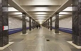 Станция построена по типовому проекту[7]. Конструкция станции — колонная трёхпролётная мелкого заложения (глубина заложения — 6 метров). На станции два ряда по 40 четырёхгранных колонн с шагом 4 метра. Расстояние между осями рядов колонн — 5,9 метра. В октябре 2021 года начались работы по замене облицовки путевых стен.