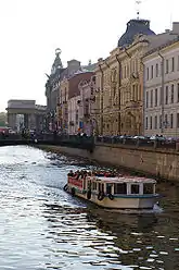 Развито малое судоходство по рекам и каналам Петербурга. Многочисленные прогулочные суда обслуживают туристов, предлагая экскурсии по водным артериям города. Мест посадки на прогулочные суда очень много, у каждого причала стоит множество теплоходов, катеров и моторных лодок.[6] Для экскурсий по рекам и каналам Петербурга создан специальный класс судов — Фонтанка.