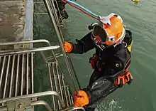 Водолазное снаряжение — комплект технических средств, используемых водолазом для обеспечения его жизнедеятельности и работы под водой. Часто водолазное снаряжение делят на два типа: тяжелое (для погружения на большую глубину) и лёгкое (для погружения на малую глубину, а также используемое в спортивных целях). Также водолазное снаряжения различают по способу подачи воздуха: шланговое и автономное[1]. Тем не менее справочная классификация водолазного снаряжения предполагает деление как по конструктивным особенностям, так и по типу системы подачи воздуха и составу дыхательных смесей, используемых в этих системах.