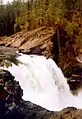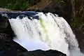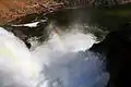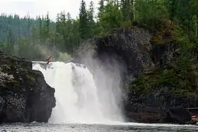 Находится в каньоне Водопадный в 25 км от выхода реки из ущелья. Ориентиром у водников служит галечная коса (в большую воду остров), расположенная перед водопадом у правого берега. С косы видны резкий перепад высот и водяная пыль, здесь отличная площадка для приземления любого вертолёта.