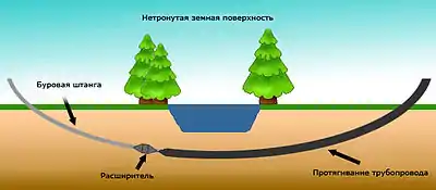 - бестраншейная технология прокладки, которая возможна при горизонтальном бурении (сокр. ГНБ);