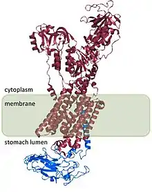 | Другие названия: | Водородно-калиевая аденозинтрифосфатаза, протонная помпа, протонный насос |