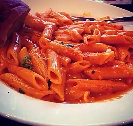 ![]() Паста пенне, приготовленная в красном соусе и водке | |