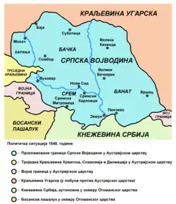 Во время революции 1848—1849 годов в Венгрии на территории Воеводины происходили антифеодальные выступления сербских крестьян. В мае 1848 года народная скупщина ряда комитатов Южной Венгрии, населённых сербами, провозгласила автономию Воеводины, однако венгерское революционное правительство отказалось её признать. В середине XIX века, в результате объединения Срема, Баната и Бачки было создано особое герцогство (отсюда название Воеводины: серб. Војводина, нем. Herzogtum — «герцогство»), существовавшее до 1860 года.