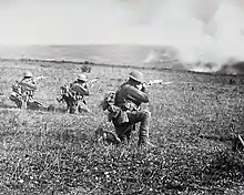 Пять пехотных дивизий Австралийских Императорских сил принимали участие в боях во Франции и Бельгии после того, как покинули Египет в 1916 г[79]. 1-й корпус АНЗАК занял позиции в тихом южном секторе от Армантьера 7 апреля и в течение следующих двух с половиной лет АИС принимал участие в большинстве основных битв Западного фронта, зарабатывая внушительную репутацию. По прошествии разрушительнейшей битвы на Сомме на протяжении следующих недель четыре австралийских дивизиона были более преданы своему делу[80]. 5-й Дивизион, дислоцировавшийся на левом фланге, впервые участвовал в битве при Фромеле 19 июля 1916 года, потеряв 5533 человек в первый же день. 1-й Дивизион начал боевые действия 23 июля, атакуя Позьерс, и ко времени его освобождения 2-м Дивизионом 27 июля потерял в бою 5 286 человек[81]. Атака на Мукефарм проводилась в августе, после которой насчиталось около 6 300 жертв[82]. К тому времени АИС был снят с Сомме и реорганизован, так как его потери составляли 23 000 человек за 45 дней[81].