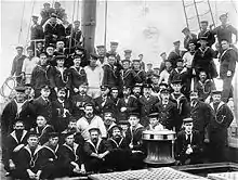 До образования Федерации каждая из колоний управляла своим флотом сама. Флоты были малы и не имели возможности уходить в дальние плавания, что заставляло колонии субсидировать строительство британских военно-морских эскадрилий на протяжении десятилетий. Колонии сохраняли контроль над своим флотом до 1 марта 1901 года, после которого были образованы военно-морские силы Содружества. Однако проблема выхода в долгое плавание оставалась и в конечном итоге ни к каким изменениям в морской политике Австралии не привела. В 1909 году премьер-министр Альфред Дикин, во время участия в императорской конференции в Лондоне, добивался прекращения существования системы субсидий от правительства Великобритании для того, чтобы образовался собственный австралийский военно-морской флот. Адмиралтейство отвергло предложения, полагая, что небольшой флотилии эскадренных миноносцев и подводных лодок будет достаточно. Дикин был впечатлён таким ответом, а годом ранее предложил Великому белому флоту посетить Австралию. Этот визит преуменьшил общественный энтузиазм и частично привёл к заказу двух 700-тонных эсминцев класса Ривер. Рост немецких военно-морских сил побудил к изменению мнения Адмиралтейства, после чего был создан австралийский военно-морской флот в 1911 году, поглощавший военно-морские силы Содружества[54]. 4 октября 1913 года новый флот, состоявший из крейсера HMAS Australia (1911), трёх лёгких крейсеров и трёх эсминцев, проплыл рядом с Сидней Хедс, в то время как несколько других кораблей находились ещё в стадии строительства. И, как следствие из этого, военно-морской флот Австралии вступил в Первую мировую войну в полном составе[55].