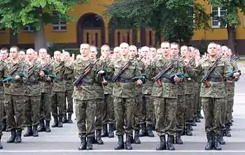 Я, солдат Войска польского, настоящим клянусь верно служить Республике Польша, защищать ее границы и независимость, соблюдать Конституцию, хранить честь польского солдата и защищать флаг. Если возникнет необходимость, я клянусь не пощадить ни своей крови, ни своей жизни ради моей страны. И да поможет мне в этом Бог!