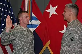 Граждане Украины, которые призваны или добровольно вступили на военную службу, принимают военную присягу на верность народу Украины, её составляют в торжественной обстановке, с оружием в руках, у боевого знамени воинской части, перед строем командиров и воинов. Молодой воин даёт персональную клятву народу Украины, государству, называя свою фамилию, имя, отчество.