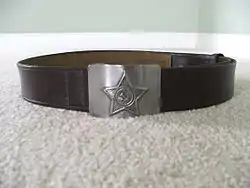- поясной ремень с пряжкой покрытой краской защитного цвета (жаргон, партизанский ремень), не путать с простым ремнём с пряжкой из жёлтого металла;