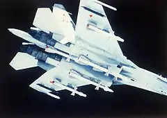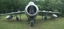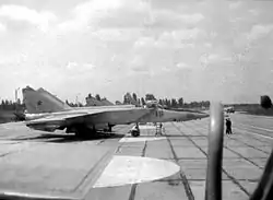 В 1955 году в ОКБ Сухого был создан фронтовой истребитель Су-7. С 1958 года серийно выпускался лёгкий манёвренный сверхзвуковой фронтовой истребитель МиГ-21, имеющий максимальную скорость 2200 км/ч[46]. Эти машины, являющиеся наиболее характерными представителями второго поколения сверхзвуковой боевой авиации, имели мощное пушечное вооружение, могли нести на борту УРС и НУРС и бомбы[47]. Истребители МиГ-21 с начала 1960-х годов в массовом порядке поступали в строевые авиаполки ВВС и ПВО. На долгие годы именно они стали основными боевыми машинами советской фронтовой авиации и ПВО. Благодаря РЛС самолёты второго поколения стали всепогодными. Советским самолётам второго поколения МиГ-21, Су-7 ,Су-9, Су-11 противостояли аналогичные истребители стран НАТО: американские F-104, F-4, F-5A, F-8, F-105, французские «Мираж»-III и «Мираж»-IV[28]. Наиболее распространённым типом крыла у данных самолётов было треугольное.