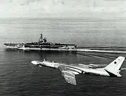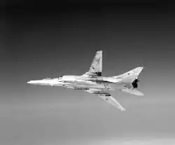 Бомбардировочная авиация тоже переходила на большие скорости. Сверхзвуковой бомбардировщик с двумя реактивными двигателями Ту-22 был разработан для операций против военно-морских сил НАТО[48]. Американским аналогом Ту-22 являлся B-58. B-58 стал первым дальним сверхзвуковым бомбардировщиком. На момент своего создания по максимальной скорости (M=2) не уступал самым быстрым истребителям. Из-за ряда недостатков эксплуатация B-58 была недолгой, однако самолёт занял заметное место в истории бомбардировочной авиации.