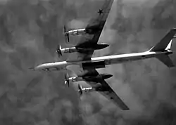 К началу 1950-х годов были прочно освоены околозвуковые скорости полёта. В феврале 1950 года на серийном истребителе МиГ-17 лётчиком-испытателем Иваном Иващенко в пикировании была превышена скорость звука[41]. Началась эра сверхзвуковой авиации. Первым советским серийным сверхзвуковым истребителем, способным развивать скорость свыше М=1 в горизонтальном полёте, стал МиГ-19[42] (а также модификация МиГ-19 ПТ). Этот самолёт был сравним с американским истребителем F-100 «Суперсейбр» и представлял первое поколение сверхзвуковых истребителей. На смену устаревшим самолётам-штурмовикам пришли истребители-бомбардировщики МиГ-15бис[10]. На вооружение дальней авиации поступили новые тяжёлые реактивные и турбовинтовые самолёты Ту-16, Ту-95, М-4, 3М, по классу соответствующие американским бомбардировщика B-52, В-36 и B-47[29].
