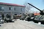 ![]() | Из бронетанковой техники в музее также представлены: Т-34-85, ИС-3, Т-54, Т-80, БМП-1. Справа Т-62 с дополнительной бронезащитой на башне. | ![]() |