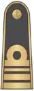 | Российское соответствие | Адмирал | Вице-адмирал | Контр-адмирал | Капитан 1-го ранга | Капитан 2-го ранга | Капитан 3-го ранга | Капитан-лейтенант | Старший лейтенант | Лейтенант |