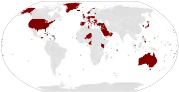 По официальным данным на сентябрь 2006 года, Пентагон располагал 823 только крупными зарубежными военными базами[1]. В это число включены только базы площадью не менее 10 акров (4,05 га) или с объёмом инвестирования не менее 10 000 000 долларов (например, база Манас площадью более 200 га в список не попала, так как не удовлетворяла этим критериям)[1]. В связи с окончанием Холодной войны только в 1988—1995 годах были закрыты 97 зарубежных военных баз[1].