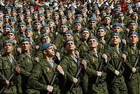 - Парад 9 мая 2015 года стал центральным событием празднования 70-летия со дня окончания Великой Отечественной войны[37][38]. В параде приняли участие свыше 16 тысяч военнослужащих[39], в том числе более 700 иностранных военных из десяти стран[40]. На параде присутствовал 31 лидер иностранных государств[41].