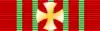 Лента медали шёлковая муаровая красного цвета с пятью тонкими зелёными полосками. В зависимости от класса на ленту крепится металлическая накладка в виде лапчатого креста: